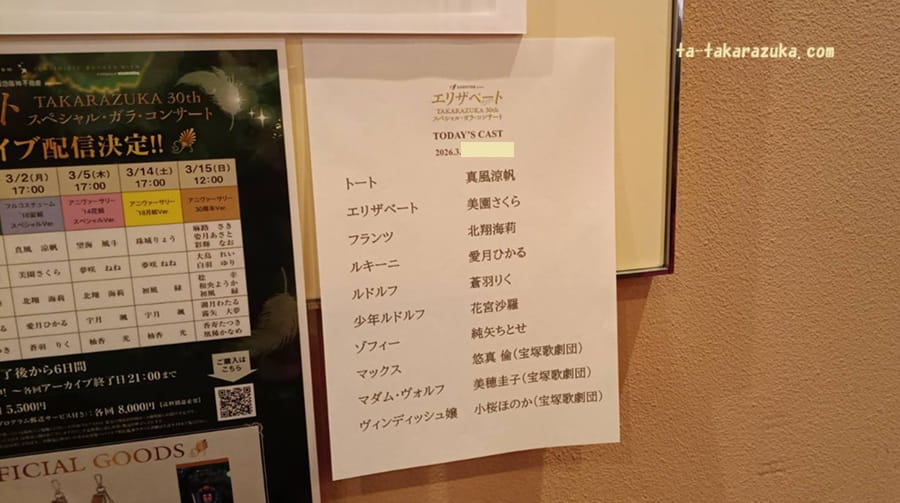 これ・・・トートの真風さんやフランツの北翔海莉さん、ルキーニの愛月ひかるさんと熱狂的ファンがたくさんいそうな面々でもこのような案内はなかったのに・・・写真ではひとりしか映っていませんが実際は3人ほどいました。