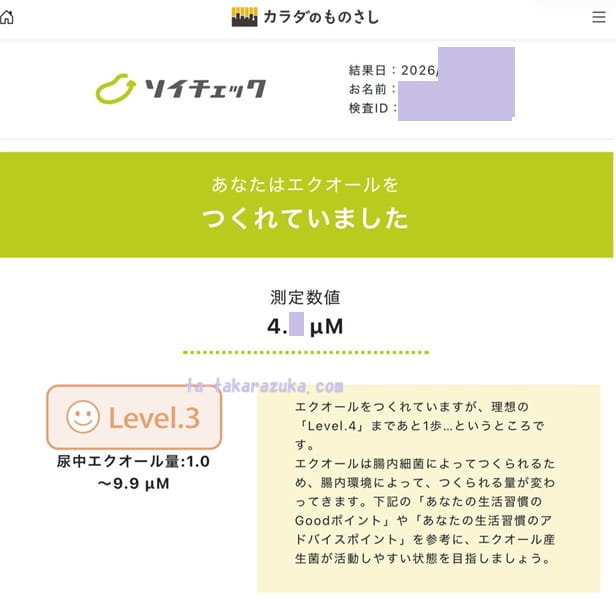 な結果でしたから頑張って大豆製品を食べています。検査時はさして大豆製品を食べていなかったから今の私の腸内はもっとエクオールでいっぱい・・・なはず。