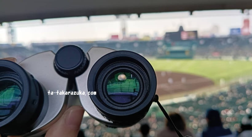 夫おすすめの球児くんを双眼鏡越しに撮影したりも。