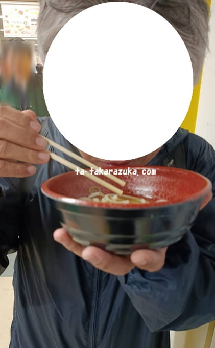 バツが悪そうにうどんをすすっていました。油揚げを丸ごと食べようとしたので慌ててストップをかけましたよ、私は大豆製品を積極的にとるようにしていますから。